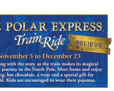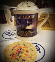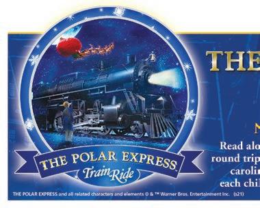Hear the story of The “Polar Express™” being read while you enjoy rich hot chocolate and fresh baked cookies. Catch the Christmas spirit as the crew leads in the singing of everyone’s favorite Christmas carols! The POLAR EXPRESS™ train ride lasts about 75 minutes. First Class tickets include dining car seating and a Polar Express™ souvenir ceramic mug.