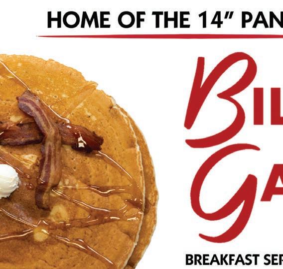 If you like fresh, made from scratch dishes you’ll love Billy Gail’s. Their delicious menu features giant 14” pancakes, five egg omelettes and so much more!