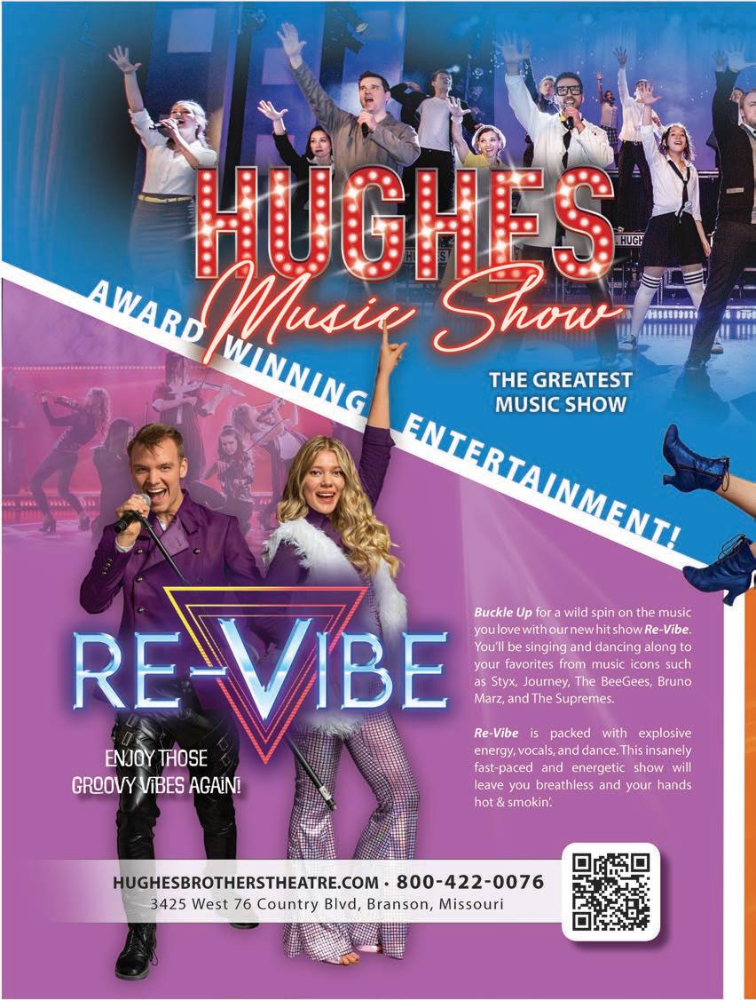 Other must see shows at the Hughes Brothers Theatre include the Hughes Music Show featuring the entire Hughes Family; the Hughes Brothers Country Dinner Show starring the Hughes Brothers; and the Re-Vibe Show produced, choreographed, and starring the 2nd Generation of Hughes.