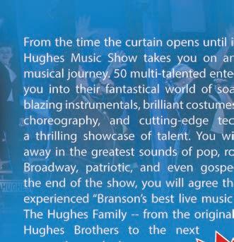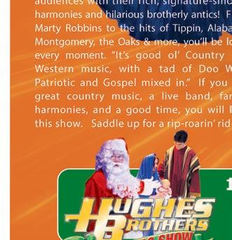 Celebrate the season with the show that has been awarded “Best Christmas Show” an incredible 13 times! The Hughes Christmas Show runs from Nov 1 - January 7 with shows at 10 a.m., 2 & 8 p.m. Save $5 off an adult admission with your Travelhost Coupon. The Hughes Brothers Theatre is located at 3425 West 76 Country Blvd. Call 800-422-0076 for schedule and reservations or visit hughes-brothers.com.