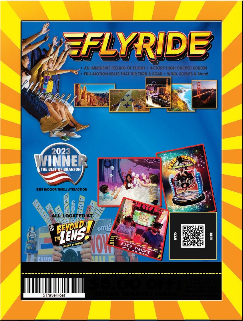 Beyond The Lens! is where entertainment and technology collide! We call it TechnoTainment™ and you will love it! It is home to one of Branson’s newest attractions, FlyRide. This amazing sensory experience gives you the immersive feeling of flight as you soar over 22 national landmarks!