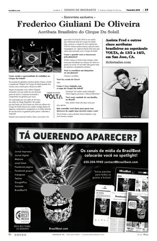 Frederico Giuliani De Oliveira Acróbata Brasileiro do Cirque Du Soleil aprovado! No final de 2016 eu me mudei para Montreal (sede do Cirque du Soleil) para começar a criação do novo espetáculo VOLTA. Foram muitos treinos, aula de teatro, maquiagem, etc. Agora já fazem dois anos que estou nessa jornada com o Cirque du Soleil Como e quando você se interessou pela ginástica? Desde criança eu tinha muita energia, então meus pais decidiram me colocar em vários esportes na escola. Fiz de tudo! Mas gostei mais de capoeira e da ginástica artística