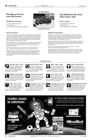 Preheat the oven to 425 ° F (220 ° C). With a grinding knife, cut the fat of the meat into lozenges; rub on it 3 to 4 tablespoons of the coarse salt so that the cuts are evenly salted. In a baking dish appropriately sized to accommodate the picanha, place the rest of the salt and spread it in a layer. Then arrange the meat over the salt with the fat side facing up. Cover the baking sheet with foil and bake for 45 minutes.