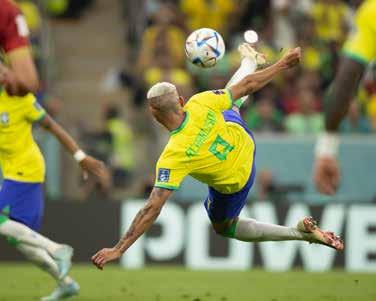 O segundo tempo, por ou tro lado, foi um massacre. A Seleção sobrou no campo de ataque e o resultado veio pelos pés do Pombo Richar lison, ex-América. Primei ro, aos 16’, empurrando para o gol após boa jogada de Neymar e Vini Jr. Aos 28’, o gol mais bonito da Copa até agora. Após bom cruzamen to de Vini Jr., o potiguar Ri charlison novamente apare ceu, desta vez para dominar e finalizar em um lindo vo leio.