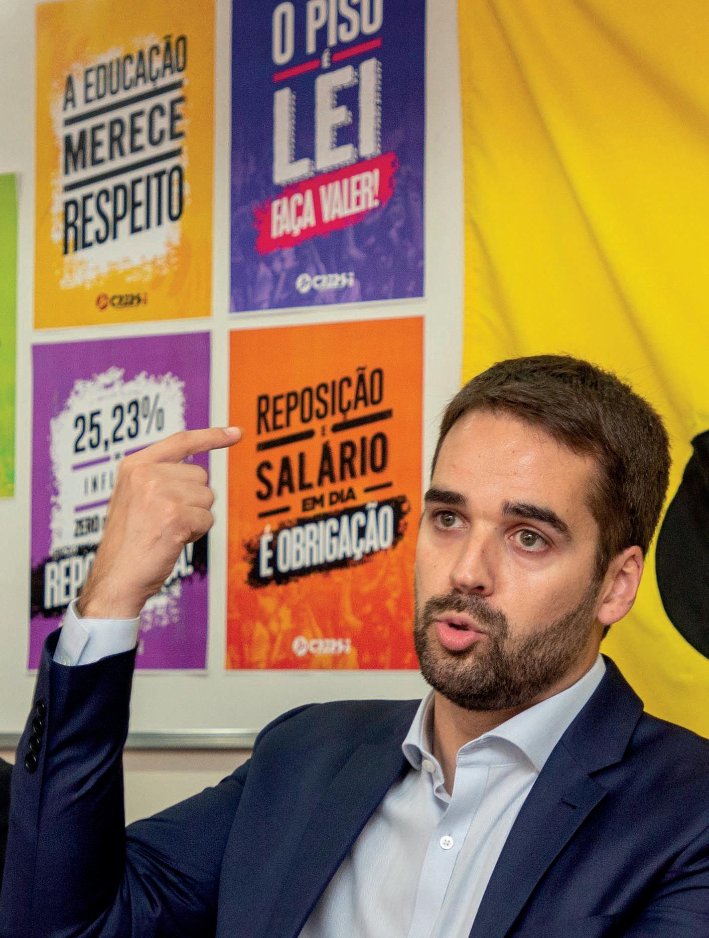 ▶ Assim que reelei to, Leite reconheceu suas falhas na edu cação durante o pri meiro mandato e prometeu trabalhar para melhorar a es trutura e moderni zar as escolas. Para o 1° vice-presidente do CPERS Sindicato, Alex Saratt, a preca riedade é evidente, mas também os tra balhadores preci sam ser valorizados.