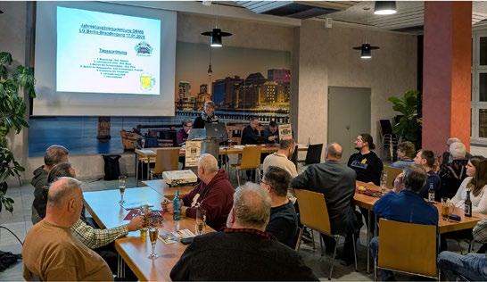ging an die neuen Gesichter unter den Mitgliedern, die durch Eintritt, Wiedereintritt oder Landesgruppenwechsel die Gemeinschaft nunmehr bereichern: Sebastian Feind, Jakob Frenzel, Hans Kaspar Mayer, Benjamin Palmer und Carsten Zufall. Diese erwiderten den Gruß ihrerseits durch eine kurze Vorstellung ihrer Person. Für die Ausrichtung der Veranstaltung dankte Kemmel dem Betriebsleiter der BKSB, Hans Kaspar Mayer, der die Landesgruppe in seiner neuen Position herzlich willkommen hieß. Es folgte die Verlesung der Tagesordnung sowie ein kurzer Ausblick auf das Programm des Jahres 2025. Schriftführerin Lisa Bauer trug den Bericht der Landesgruppe für das Jahr 2024 vor. Es fanden drei Mitgliederversammlungen, ein Sommerausflug, zwei Vorstandssitzungen sowie die gemeinsame