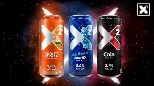 X² Ice Boost Energy ist ein Biermischgetränk aus 81 % Bier und 19 % koffeinhaltigem Energydrink (5 % Alkohol). X² Cola (Biermischgetränk aus jeweils rund 50 % Bier und koffeinhaltigem Erfrischungsgetränk) ist bereits seit Jahren ein beliebtes Cola-Bier-Mixgetränk in Hessen. Jetzt können Konsumenten den Klassiker unter den Biermisch -
