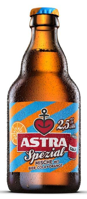 Mit dem Neuzugang bedient ASTRA den Spezi-Trend mit seiner eigenen, selbstbewusst unangepassten Art: Mische mit Bier (2,5 % Alkohol), Cola und Orange!
