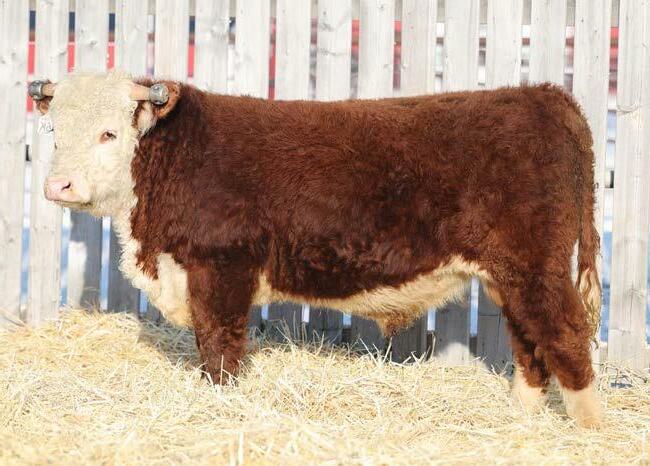 King of The Road is a red eyed, short marked powerhouse of a bull. He’s deep ribbed, heavy boned, exceptionally long and stout. He has an actual weaning weight of 930lbs. He’s very well put together for such a big bull. He was Reserve Champion at the Northern Alberta Hereford Club annual Hardisty Field Day. Short marked herd bull prospect here. King of the Road is a maternal brother to Forty Creek 234F that we own with YV Ranch. He’s also a maternal brother to Gibson’s Finest 234G at Berry Herefords in Wyoming. SELLING FULL POSSESSION & 3/4 SEMEN INTEREST, RETAINING 1/4 IN HERD SEMEN INTEREST.