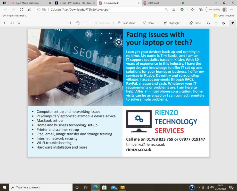 We are grateful for the support of the businesses whose adverts appear on highlighted sections. Payments received from advertisers contribute to the printing costs of the BVN.