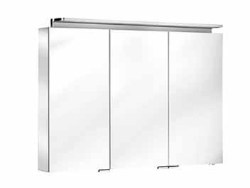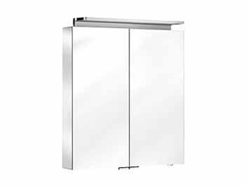 The eONE mirror cabinet range is available as a 500mm single (reversible) door unit and 3 double door units sized 600, 800 and 1000mm widths. All have LED illumination and shaver socket along with 3 crystal glass shelves.