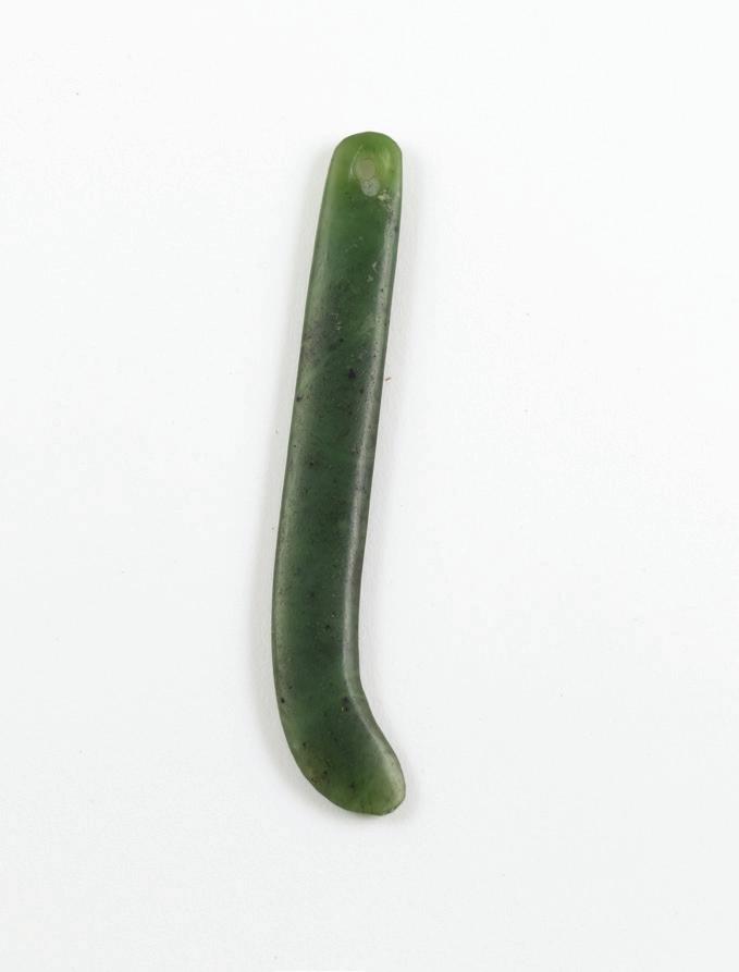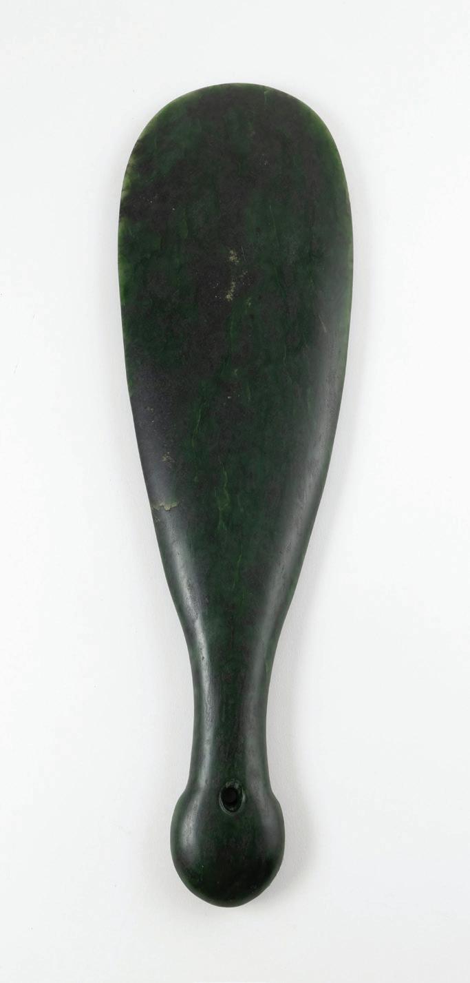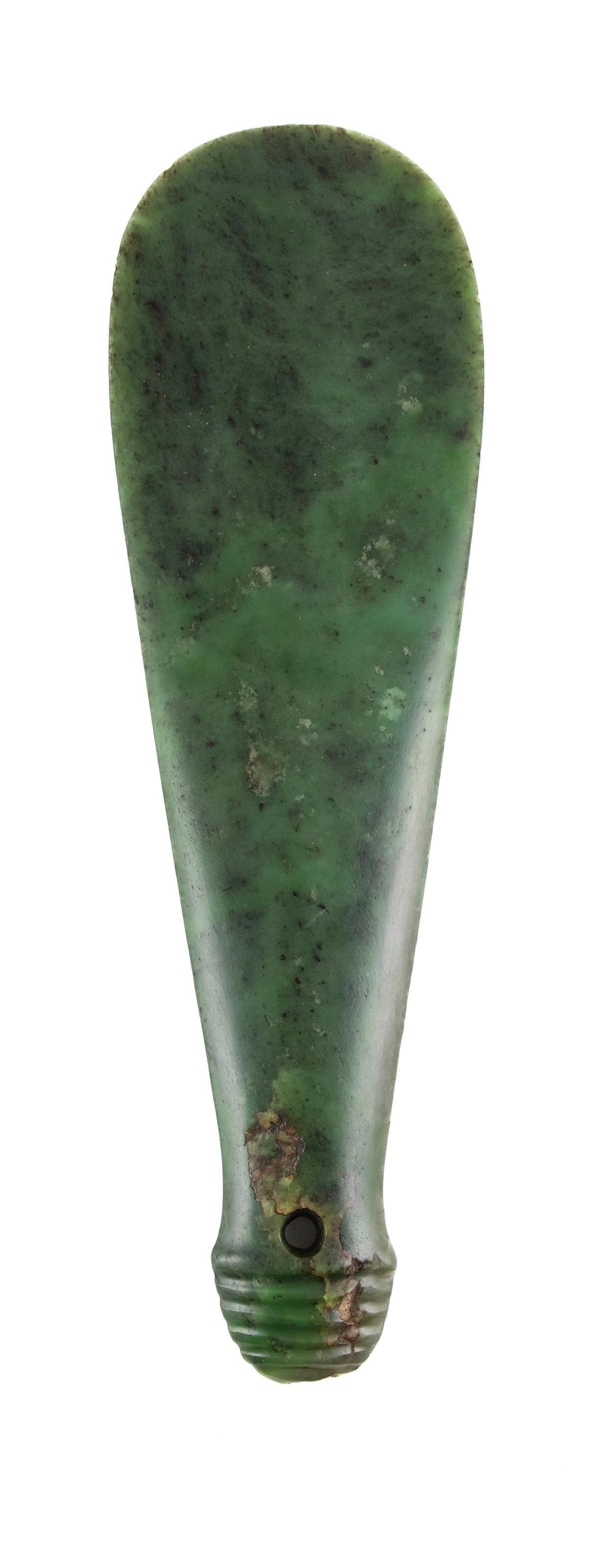 Inanga variety stone, minor frits to the blade. Found in the 1940s.