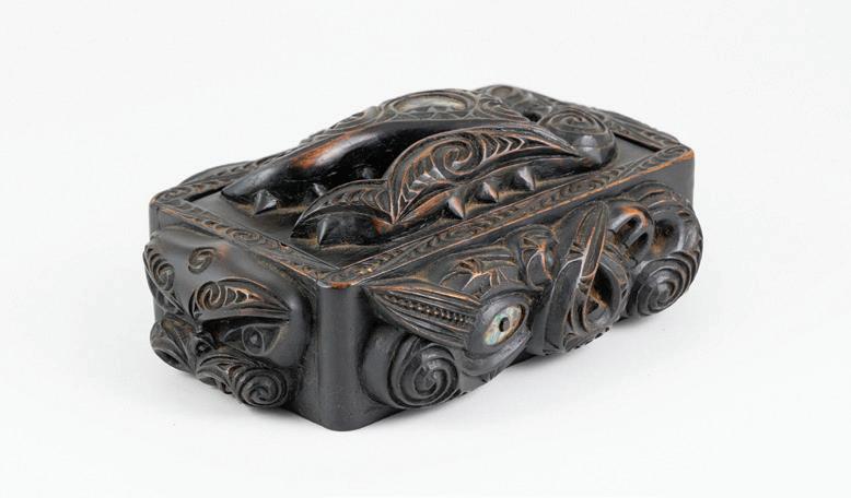 This catalogue features another fine selection of Hei-tiki along with rare Māori weaponry including a superb Pouwhenua and Toki Kakauroa from an important Wellington collection. Also included in the Oceanic section is an offering of rare pieces made by Thomas Aubrey Chappé Hall including a superb long case clock and carved coffer.