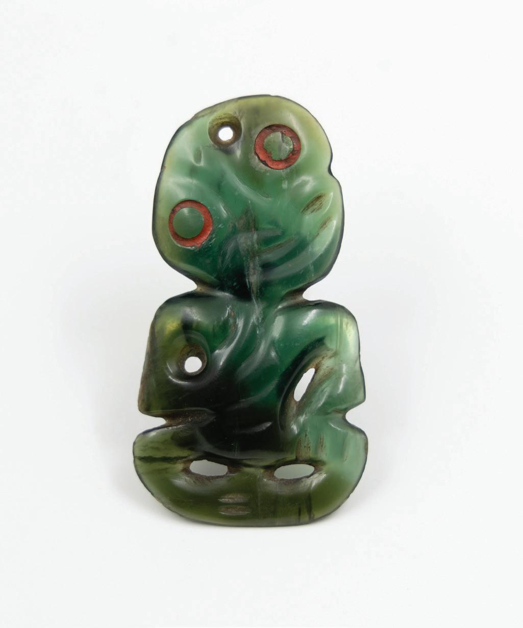 Finely carved in Kawakawa variety stone with dark inclusions throughout the shaft and small pale inclusion at the apex. Traditional stone tooled suspension hole.