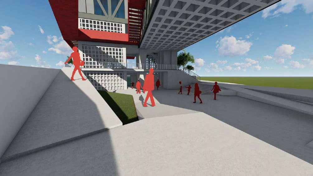 Potenciar el ujo urbano por medio de escaleras y recorrido rojo exterior que