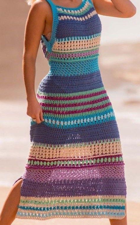 verão. Seja em vestidos, tops, saias, saídas de praia, maiôs ou biquínis, o crochê garante o frescor necessário para as temperaturas mais altas do verão. Composto de uma paleta de cores vibrantes, textura única em seda ou algodão, além da variedade de cores, á outras produções off-white, dependendo de cada estilo.