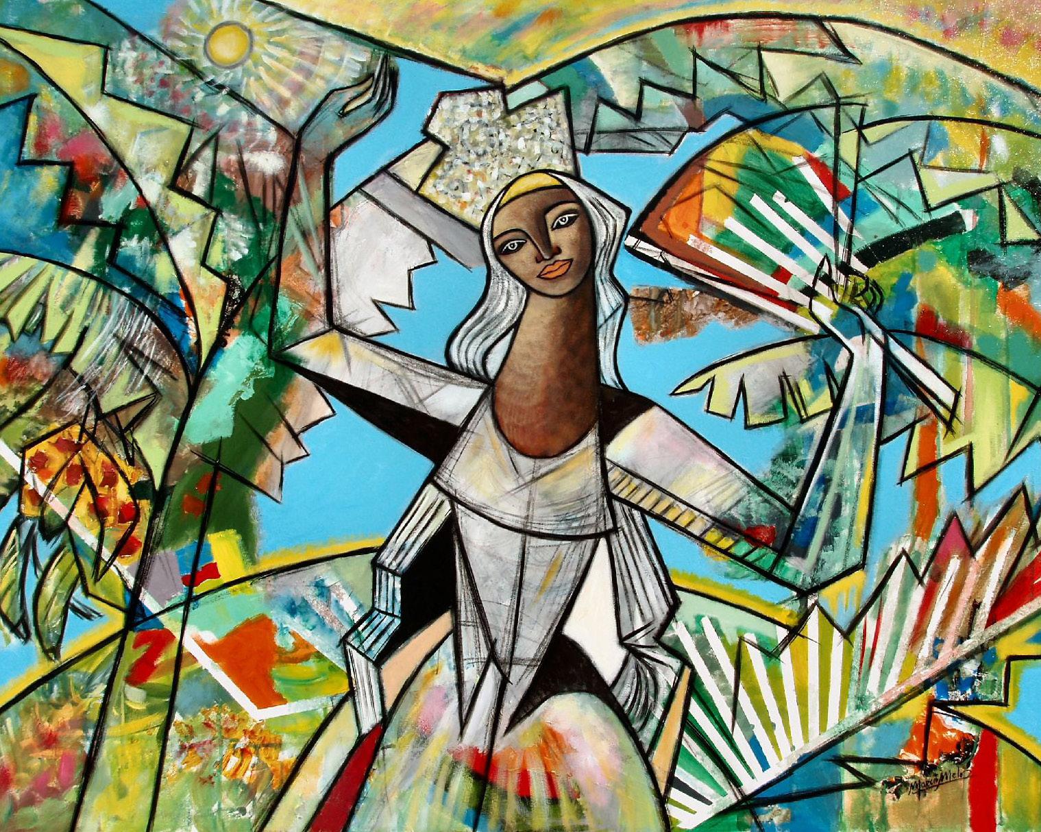 da arte brasileira, que inspira seu trabalho — uma expressão cultural rica e profundamente enraizada nas tradições populares, na mistura étnica e na exuberância tropical. Essa energia, marcada pela liberdade criativa e pelo diálogo entre o tradicional e o contemporâneo, o regional e o universal, está presente em cada uma de suas obras.