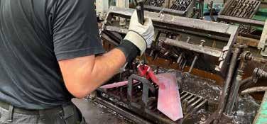Сучасне виробництво з урахуванням високої майстерності Індукційне нагрівання використовується для гартування та механічного обробітку окремих зон різноманітних заготовок. Щорічно компанія Mølbro використовує, приблизно, 2000 тонн високоякісної сталі BOHR. Переважно, сталь постачається із Швеції та Німеччини. Запчастини Mølbro вирізаються лазером із спеціальної сталі BOHR і повинні нагріватися, формуватися та гартуватися у чистій воді. Леміші Mølbro мають спеціальну форму, щоб зменшити тертя ґрунту на поверхнях лемішів, таким чином, мінімізуючи вимоги до тракторної тяги та витрат палива. Щотижня Mølbro закуповує 30-50 тонн сталі. Після нагрівання в індукційних печах заготовки формуються за допомогою одного з 350-тонних шпиндельних пресів. Компанія Mølbro з моменту заснування вже 75 років накопичує знання з металообробки та виробництво швидкозношуваних