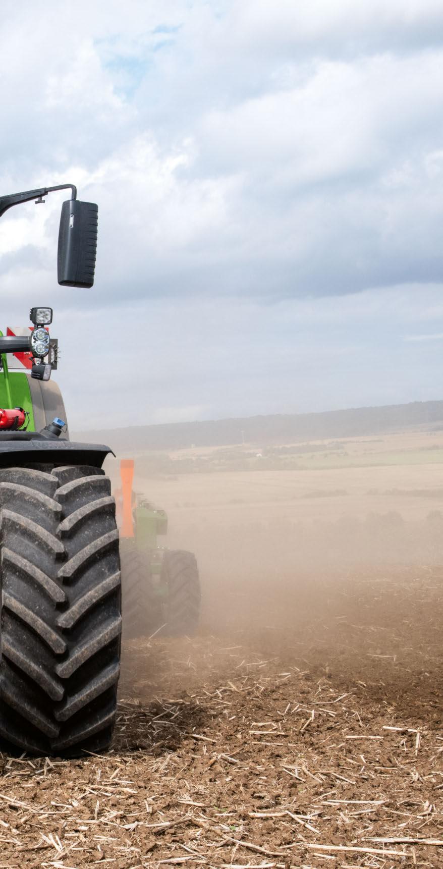 • Fuldt integreret dæktryksstyring med køretøjets egne ventil- og luftføringsteknik - op til 8 % dieselbesparelse og op til 10 % mere trækkraft på marken