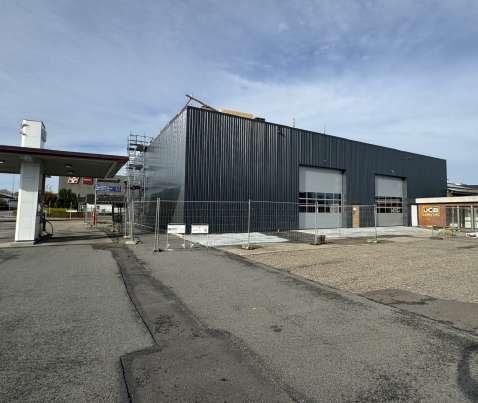 Nu opføres en helt ny maskinforretning på grunden. Vi får et ca. 900 m² topmoderne værksted, 2 stk. avancerede 9,5 m høje lagertårne til reservedele og selvfølgelig tidssvarende medarbejderfaciliteter.