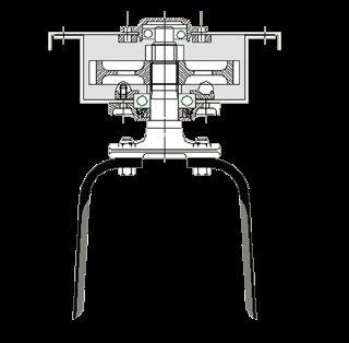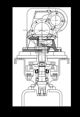 8 mm dicke Wanne, 60 mm Wellen, unterstützt durch hochwertige konische Lager, geschützt durch eine untere Öldichtung und ein mechanisches Labyrinth. Verzahnter Klingenhalter mit konischer Passung an der Welle verschraubt. Die Getriebewelle ist über einen Keilwellenflansch am Rotor befestigt, was den Ausbau des Getriebes erleichtert und die durch die Rotoren verursachten Vibrationen und Belastungen reduziert.