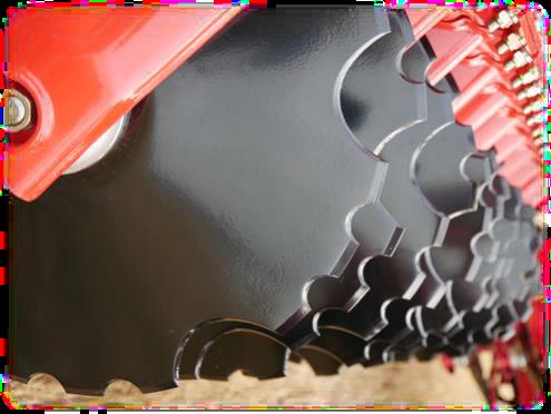 • Fleksibilitet - discsektionen kan arbejde fra 2-10 cm dybde, så der kan tilpasses mængden af materiale, som skal nedmuldes inden såning. Justeres hydraulisk.
