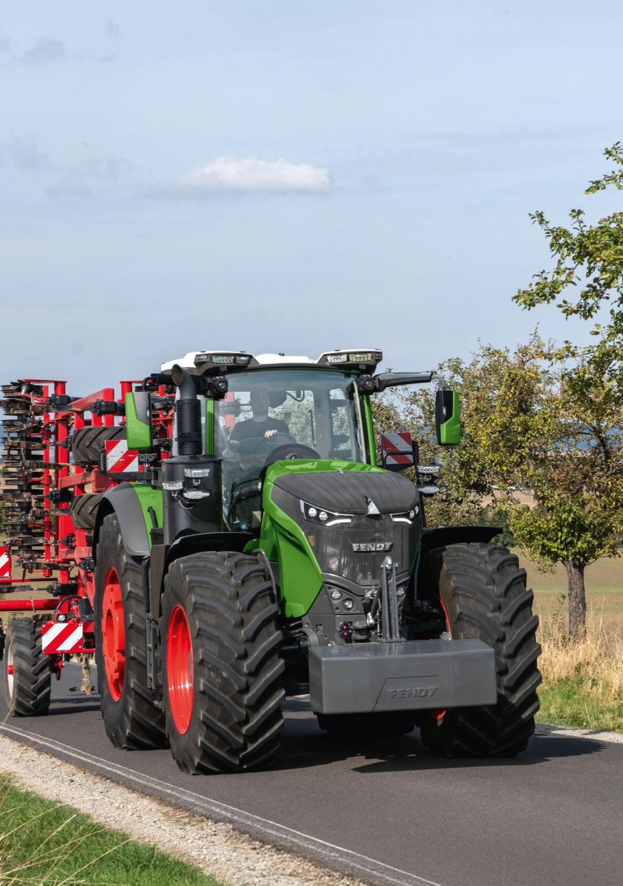 Fendt 1000 Vario er som standardtraktor med op til 550 HK særligt egnet til hårdt arbejde i marken som f.eks. jordbearbejdning, men også til udsåning og logistik – på denne vis kan den anvendes fleksibelt hele året rundt. Med Fendt AdaptivePower kan den maksimale ydelse reduceres trinvist efter behov, hvilket for eksempel skåner PTO-drevne redskaber med lavere kraftbehov. VarioDrive giver variabelt firehjulstræk, ekstremt høj trækkraft samt pull-in turn-effekten for høj manøvreringsevne. Med det integrerede dæktryksystem VarioGrip samt tvillingedæk med Duo-hjulnav øges trækkraften og samtidigt reduceres jordtrykket. Den nemme montering af tvillingedækkene på Duo-hjulnavet giver hurtig omstilling til den pågældende opgave. Takket være det nye koncept med 480 Row Crop tvillingedæk fra fabrikken forbliver køretøjets bredde, selv med tvillingedæk, under 3,5 m udvendig køretøjsbredde. To hydraulikpumper leverer tilstrækkelig transportvolumen for alle redskaber og sørger for optimal forsyning til alle forbrugere. Det nye lyskoncept sørger for en 360 oplysning og optimalt udsyn til arbejdsresultatet over hele arbejdsbredden. Fendt Workgroup (snart tilgængelig) gør det muligt, at flere traktorer arbejder sammen, perfekt afstemt med hinanden, ved hjælp af visu-