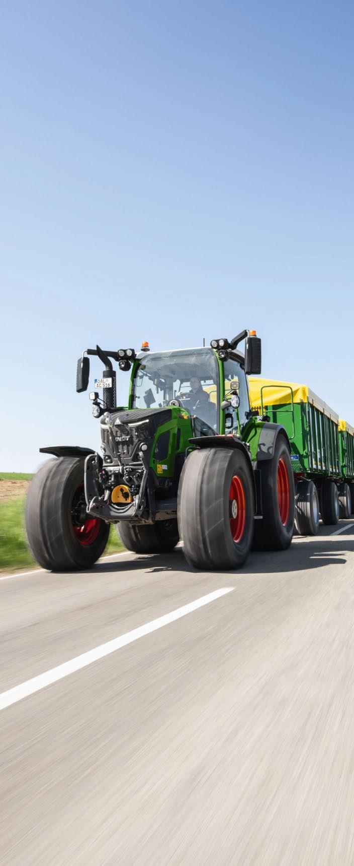 Under transport overbeviser Fendt 500 Vario med høj effektivitet og sikkerhed. Fendt iD lavomdrejningskonceptet, Fendt VarioDrive og Fendt VarioGrip sørger for brændstofbesparende kørsel ved optimalt træk og minimal dækslitage. Med op til 4,9 ton og op til maksimalt 4,0 ton støttelast ved fast montering er den ideel til tunge vogntog. Intelligente assistentsystemer, som automatisk styreakselspærring anhængerbremseassistent (TBA), den slitagefri hydrauliske ekstrabremse og den automatiske parkeringsbremse øger sikkerheden. Det markante dagslys kørelys og den automatiske styring af bremselys understøtter synligheden og advarer de bagvedkørende ved deceleration. Den ergonomiske kabine byder på optimal betjeningskomfort overalt.