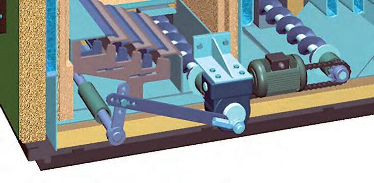 Ved hjælp af ristelementernes konstante bevægelse, transporteres forbrændingsresterne direkte til askeudtagssneglene.