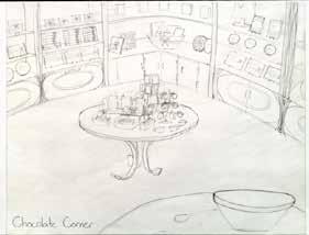 This project also branched out into Costume Design. To the right are some proposed initial sketches of the Mad Hatter's Costume and the Queen of Heart's "Execution" Jumpsuit. The costumes took their queue from the set design's many mechanical elements and decided to aim for a more Steam Punk vibe.