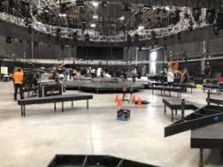 Exterior arena walls are installed as well as show stairs for the audience. Some Video is also installed.