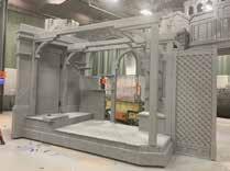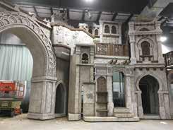 These pieces were built for a theatrical performance run of Queen Esther, at the Sight and Sound Theater in Lancaster, PA and then later for tour. Standing at 30' tall and 60' long, these pieces made up an 1/8" of the entire shows set. Working as outside contractors, a section of the giant set design was sent to Atomic to be build and finished. The set starts off as a minimal aluminum structure. From there it gets clad with varying thickness of plywood, and removable panels(used later in the show). After that the digital design gets broken down into sections and layers for foam carving on the CNC. After the pieces are cut, they are assembled and refined by the Art/ Carving Team, and then applied to the plywood clad metal structure. This process can be seen for the Old World Arch on the right and the Flash Back House below.