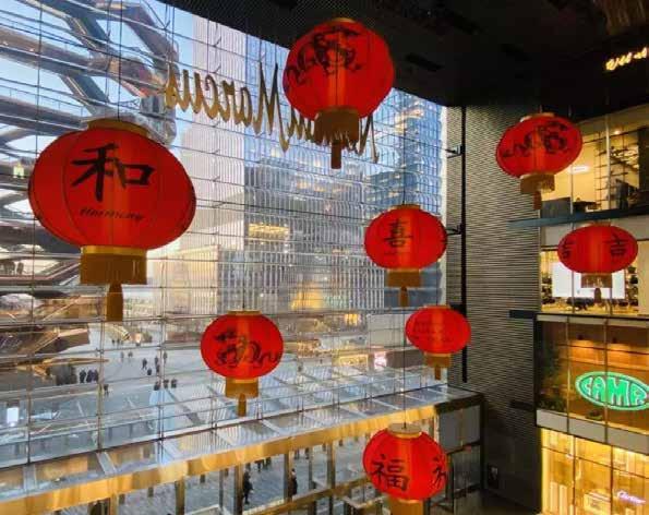 Inspired by Chinese New Year these lanterns were built for a mall in Hudson Yard, to help kick off their celebration party. Standing at 10' tall, each lantern was sewn/built at the Atomic shop and then shipped all together to the venue for an overnight install. This project was especially interesting because of the abundance of rapid prototyping needed to nail the shape, while still being light enough to fly, and transparent enough to "glow". The lanterns have an aluminum core, wrapped in LED tape, then draped with a diffusion fabric, to create the lanterns soft glow. The lantern caps were vacuum formed, and the tassels (just at 2' tall) were all hand glued/assembled.