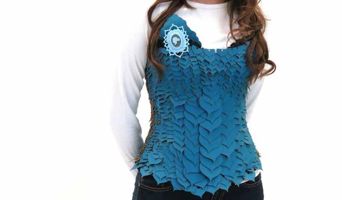 A wearable garment and accompanying piece of 3d printed jewelry. The corset was based off a tectonic system of scales that were placed and sized according to the muscular system/movement in the torso. The broach was inspired by the scale shape. This was a partner project.