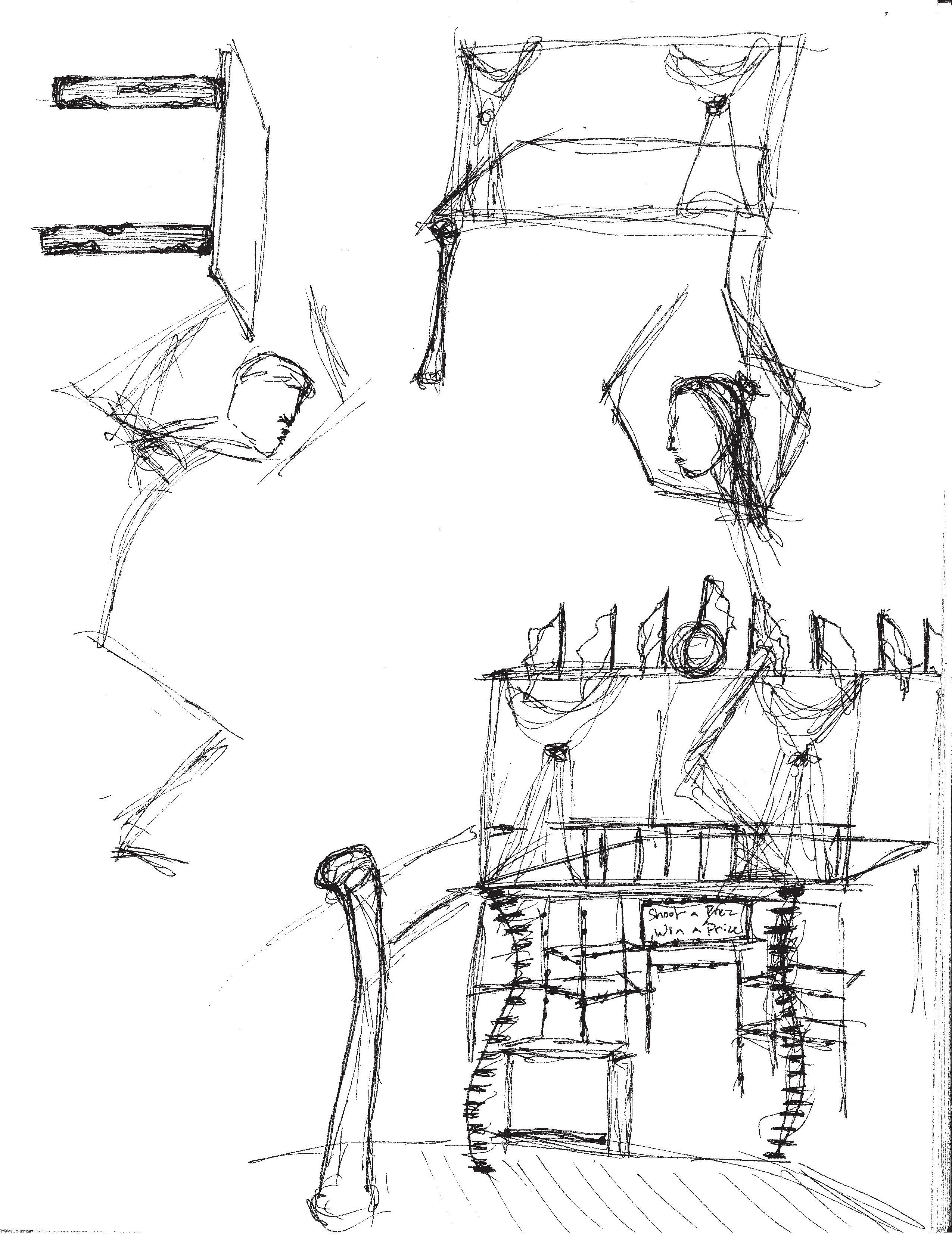 The show, Assassins, is a musical about the different assassinations and attempts on the United States' Presidents. This set was designed for the KSU Nichols Theater, which is a Thrust stage.