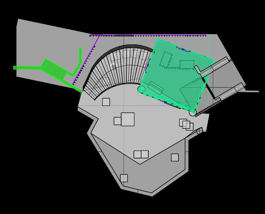 The set concept was sent to us through renderings, from there it was fully 3 dimensionally modeled in VectorWorks, with select pieces modeled in Rhino. There are also some 3D printed parts in the set, as well as LED integration.