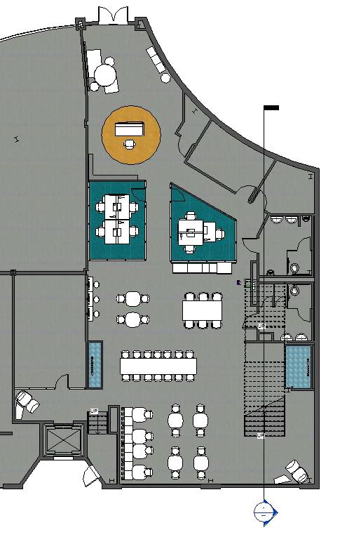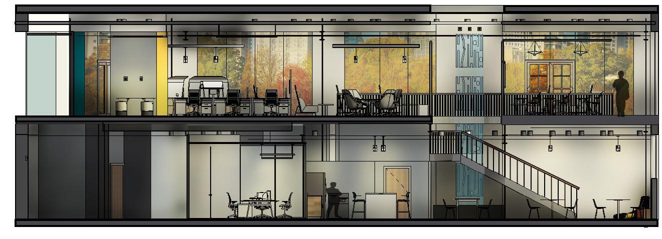 This project was located in a pre-existing building in Atlanta, Georgia, sponsored by Steelcase. Atlanta is a historical railroad town and transportation hub, this project translates that into the future with information and people.