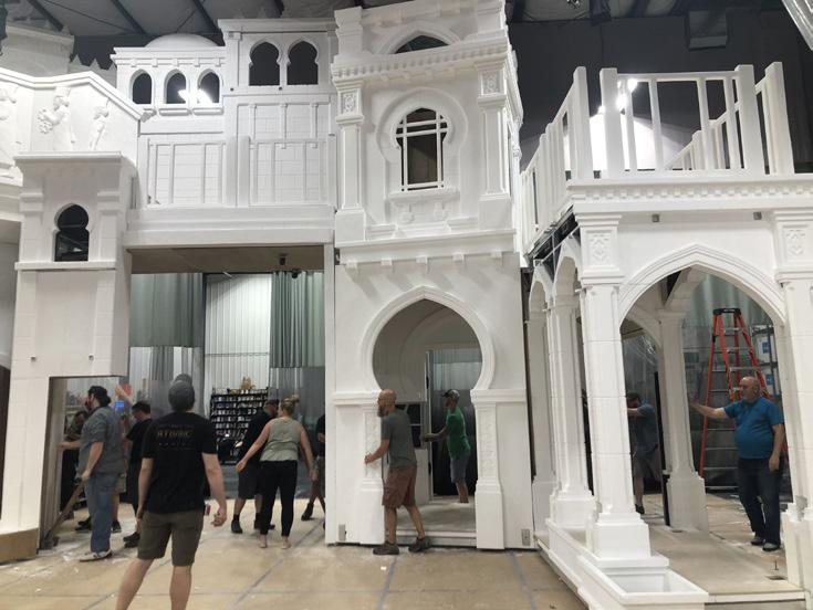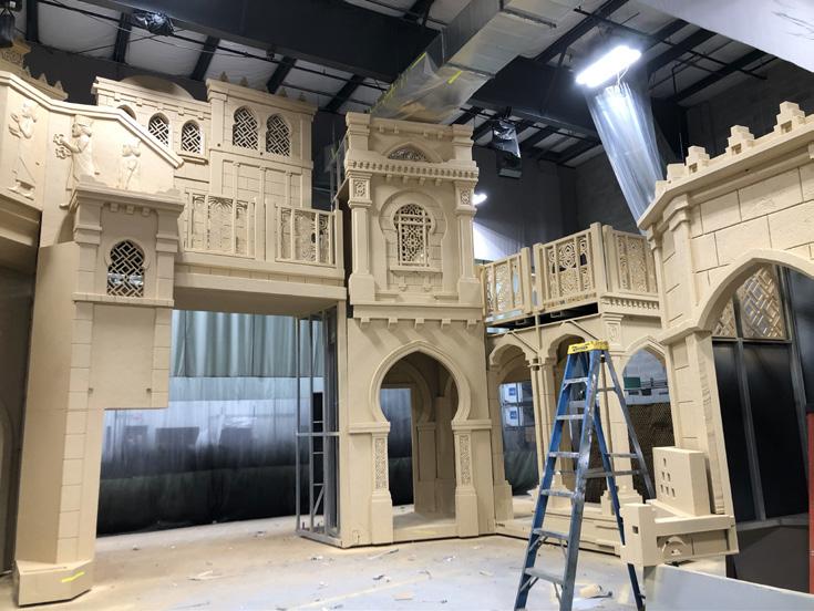 These pieces were built for a theaterical performance run of Queen Esther, at the Sight and Sound Theater in Lancaster, PA and then later for tour. Standing at 30' tall and 60' long, these pieces made up an 1/8" of the entire shows set. Working as outside contractors, a section of the giant set design was sent to Atomic to be build and finished. The set starts off as a minimal aluminum structure. From there it gets clad with varying thickness of plywood, and removable panels(used later in the show). After that the digital design gets broken down into sections and layers for foam carving on the CNC. After the pieces are cut, they are assembled and refined by the Art/ Carving Team, and then applied to the plywood clad metal structure. This process can be seen for the Old World Arch on the right and the Flash Back House below.