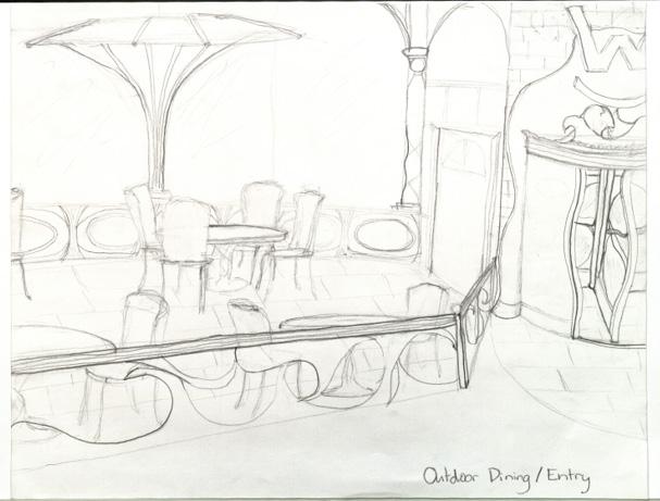 This project also branched out into Costume Design. To the right are some proposed initial sketches of the Mad Hatter's Costume and the Queen of Heart's "Execution" Jumpsuit. The costumes took their queue from the set design's many mechanical elements and decided to aim for a more Steam Punk vibe.