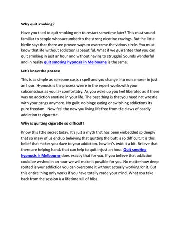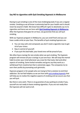 Have you tried the nicotine toffees, chewing gums and other stuff to quit smoking and still failed? It is time for you to try hypnosis to quit smoking. Do not give up as we are here to get rid of the bad habit that you have. Quit smoking hypnosis in Melbourne should be your last destination to stop smoking habit and we guarantee you that it will work. It is a psychological treatment that creates awareness in your mind and helps you to realise how bad it is to smoke.