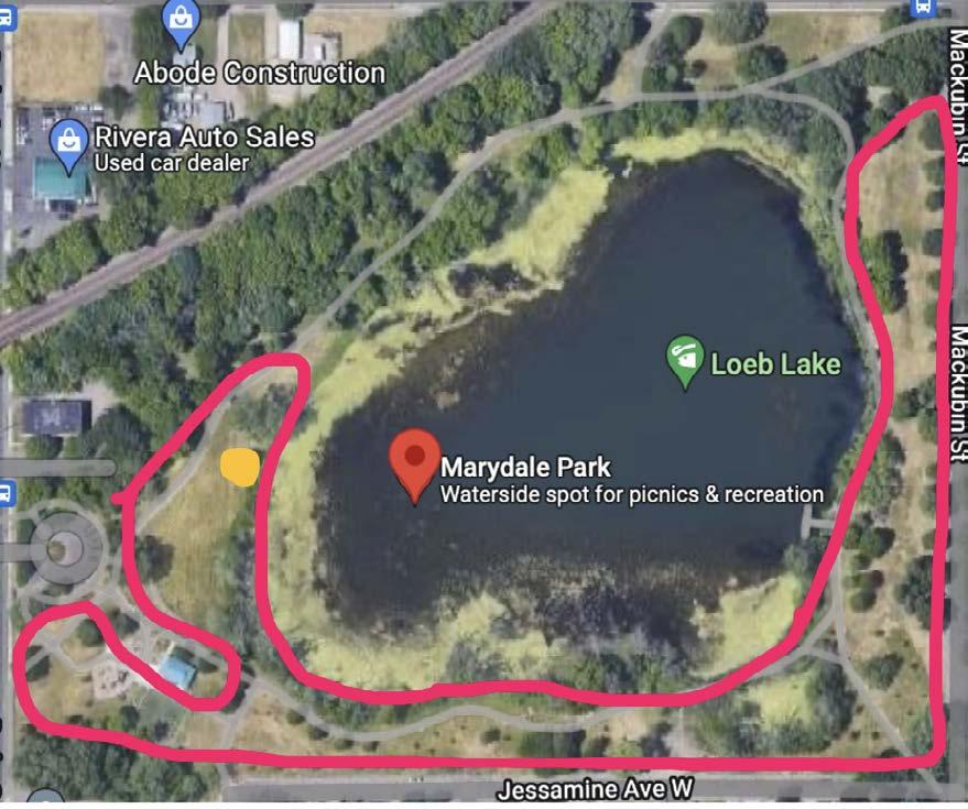 Figure 2. Map of Marydale Park, a collection site, exhibits how approved collection regions were designated (Figure by Snell-Rood lab)