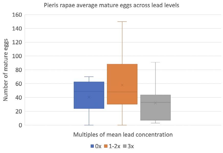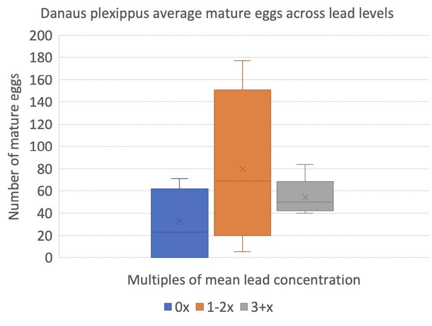 Figure 10. Danaus plexippus average mature eggs across lead levels