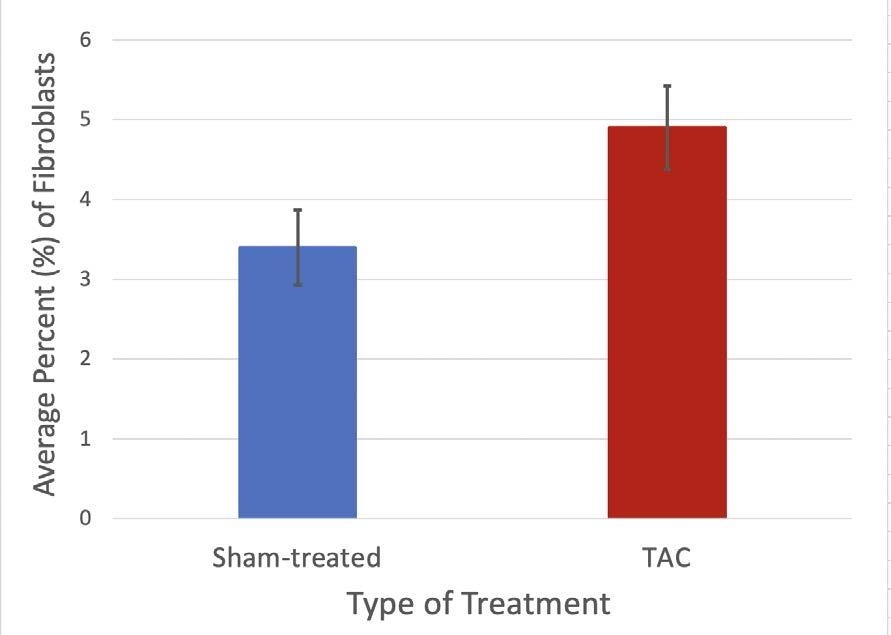 The average percentage of cells that were fibroblasts was significantly higher in 1-week TAC as compared to sham-treated sections (p < 0.05; Figure 4).