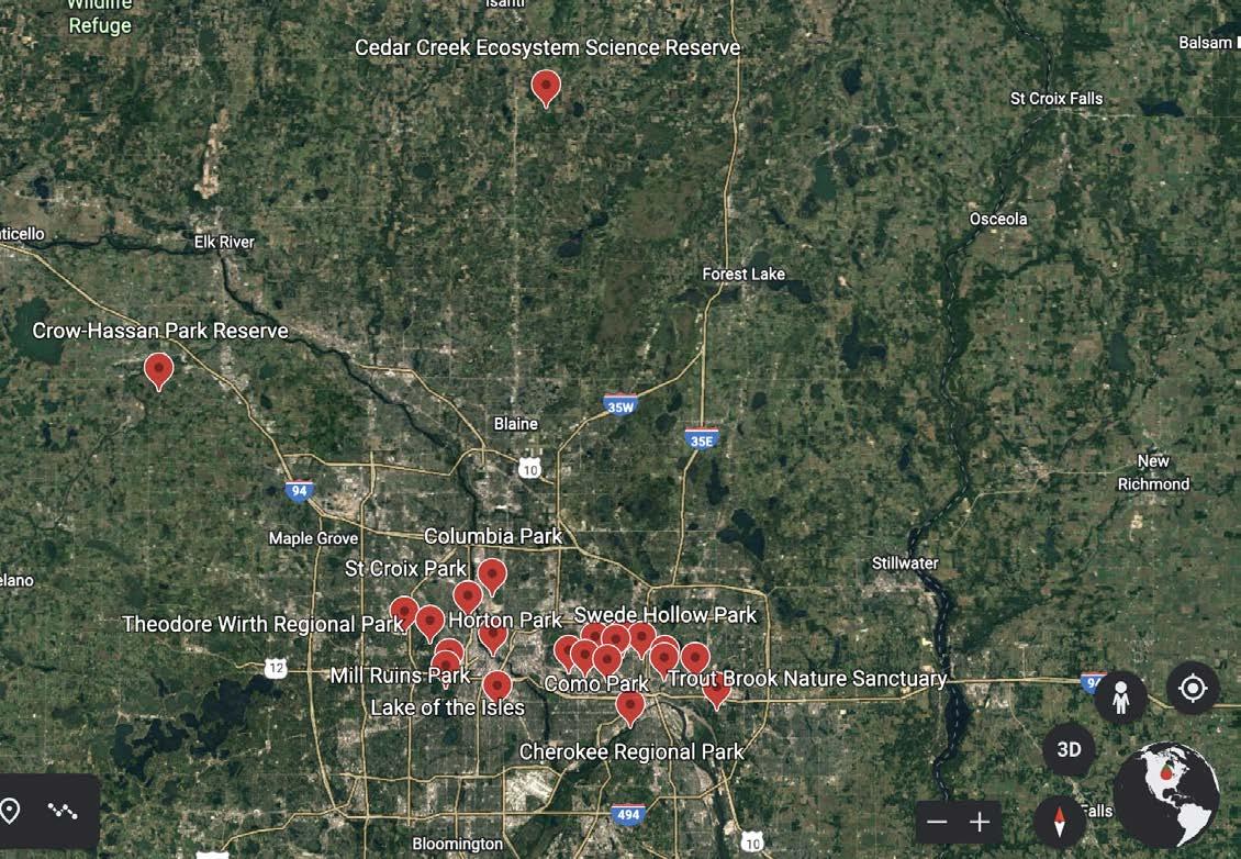 Thirty sites (Figure 1) that showed childhood blood lead levels of 3+, 1-2, or 0 times the state average were chosen in the Twin Cities metro. De-identified data on the average blood lead content of the residents in these areas was obtained from MN Department of Health publicly-available databases (Blotz, 2020). Each site was approved by the city government, who designated regions and procedures for sample collection (Figure 2). Subsequently, each site was visited four times between May-August 2022, where 200+ bioindicators were collected: invasive cabbage white butterflies (Pieris rapae) and native monarch butterflies (Danaus plexippus). Butterflies were kept dormant in a cooler (4.4°C). They were contained in wax envelopes labeled with independent IDs, the date of collection, and the site title.