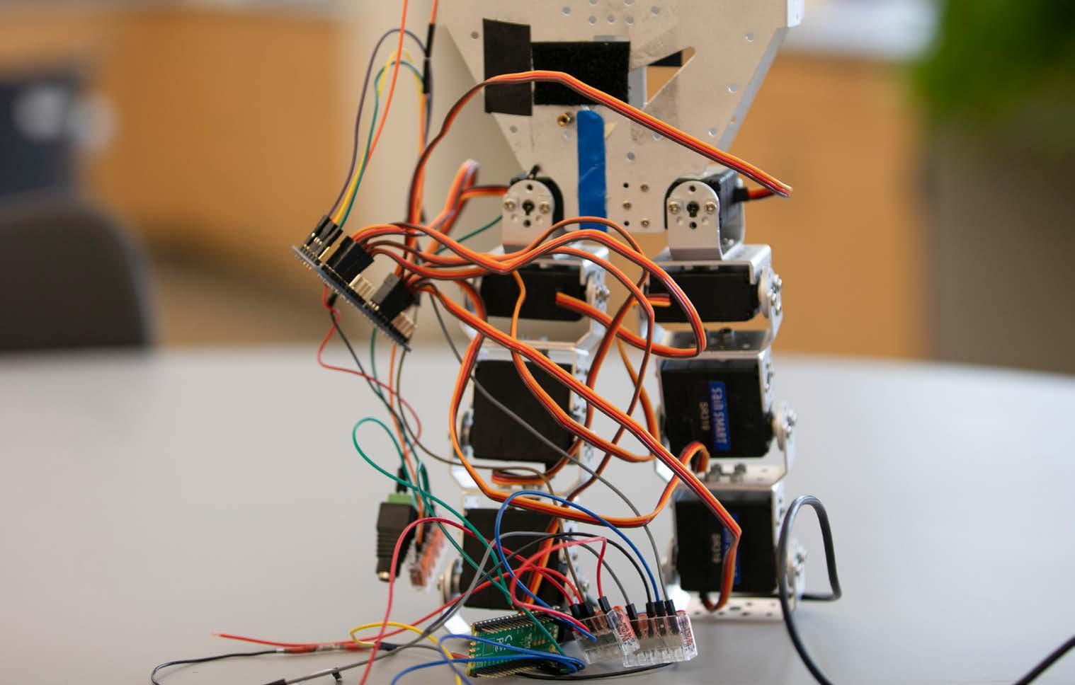 Although the relative imprecision of the flex sensors did not impede their accuracy in capturing human motion values that could be replicated by the bi-pedal robot, it might pose an issue for haptic feedback calibration To determine the correct form of the undulation form, the system must be calibrated by wearing the sensors as the athlete performs the correct form and the values are captured Those values will then be used to set the ranges for the proper undulation form and to program the vibration motors for haptic form correction Additionally, the relative imprecision of the ground values collected for vibrations, and the values collected by the training wearer as they train their form, could be compounded making the feedback less accurate A possible solution would be to interface more flex sensors into each joint of the system. Although the flex sensor varied greatly within a set stagnant angle value, when the fluctuating values were averaged, the angle produced was consistently accurate. Adding 1-2 more flex sensors ($20 per sensor) would allow the values to be averaged and improve precision while maintaining a low-cost system.