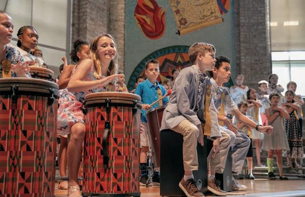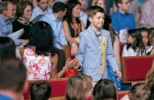 Michael Scherer ’24 gives Lower School Director Peg Bailey a celebratory high five during the Lower School Closing procession. Welcome to Middle School! MIDDLE