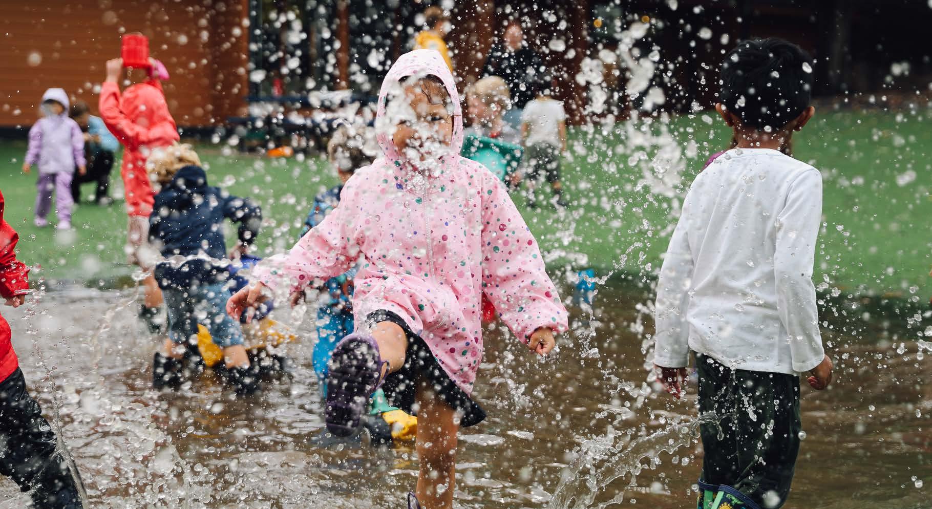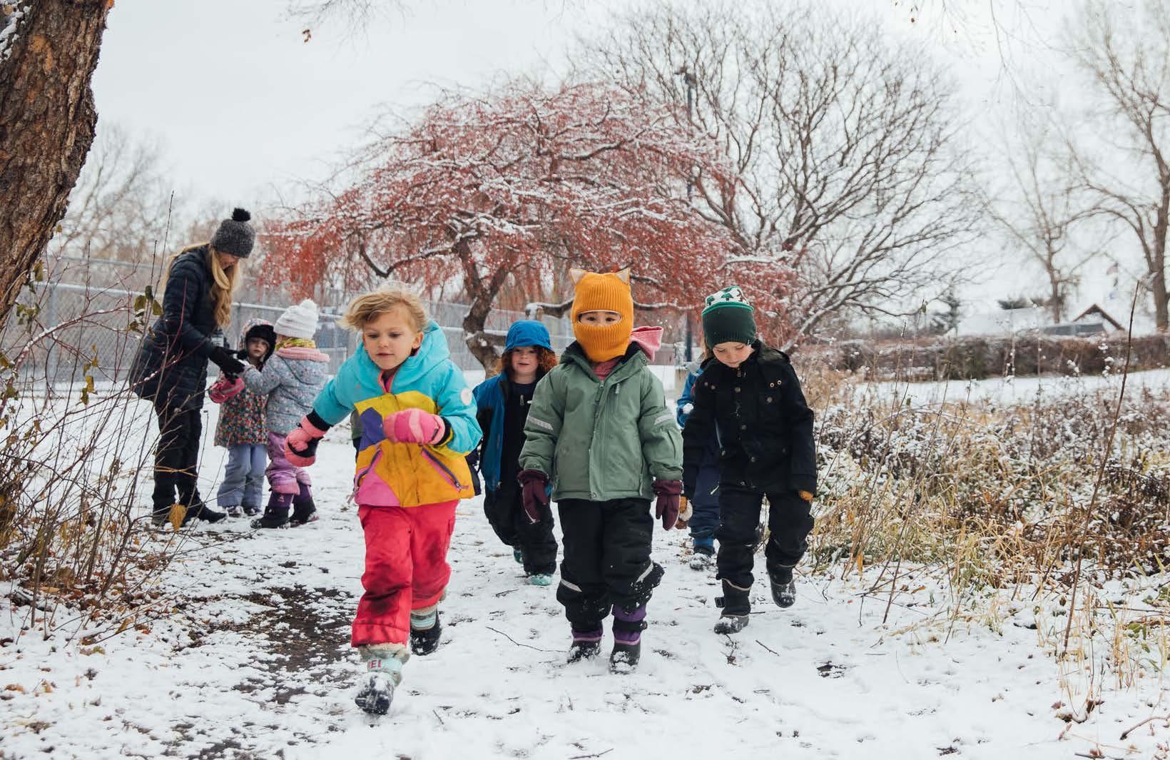 Above: Preschool students explore Breck’s campus after a December snowfall.