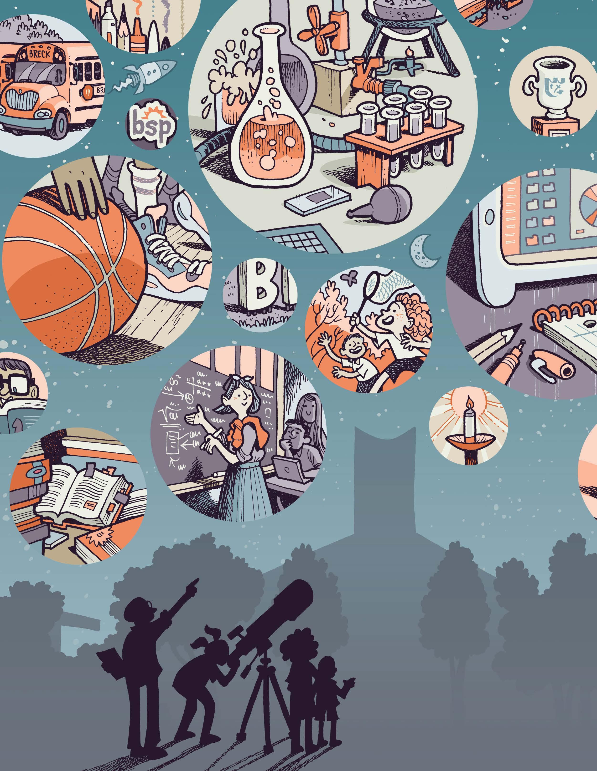 In the pages that follow, we have used Future Focus as the centerpoint of our storytelling, accompanied by illustrations from the talented Kevin Cannon ’98 (co-winner of Breck’s inaugural alumni Excellence in the Arts award). These beautiful stories of our students, faculty, staff, and alumni are the seeds that ground us in the work Future Focus urges us to do. They inspire us to do more, reach farther, and aim higher — exactly what we ask of our students every day.