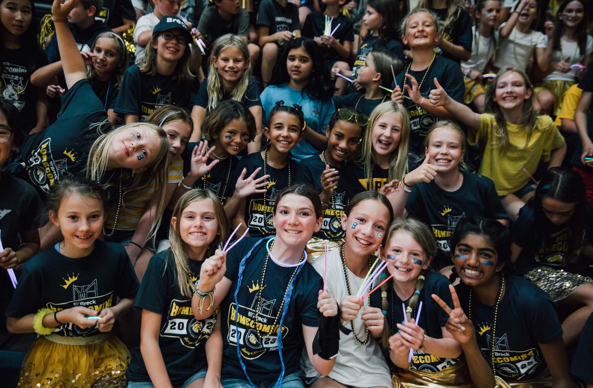 The 2023 Homecoming Court poses in front of the Breck sign during Homecoming week in September 2023.