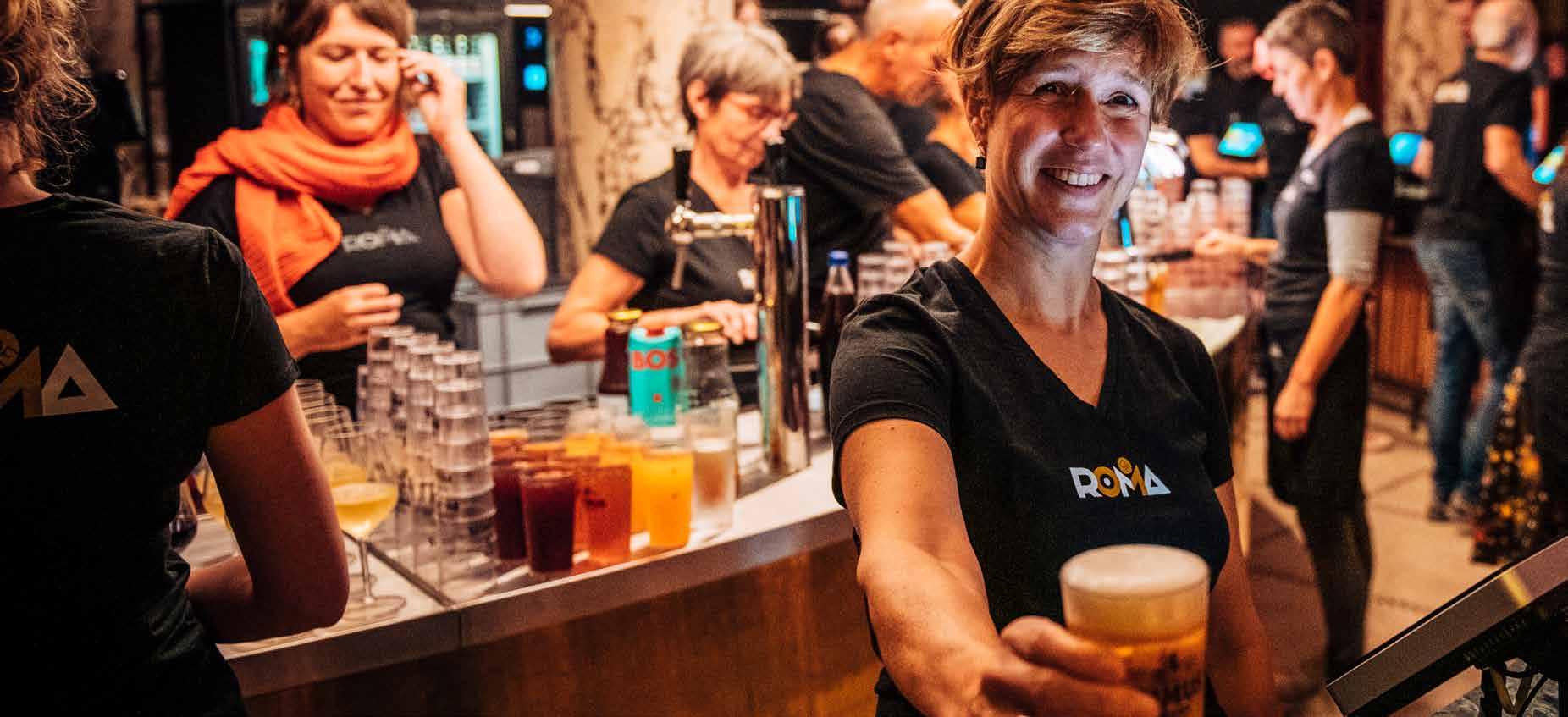 Vooral veel vriendschap en liefde is wat je bij De Roma krijgt. Het groepsgevoel en de samenhang binnen de groep is wat mensen motiveert. Er is sprake van een natuurlijke instroom. Reclame maken om mensen aan te trekken is niet nodig. Een vrijwilligersvergoeding kennen ze niet, maar er worden wel jaarlijks een paar activiteiten georganiseerd, zoals een diner met feest, of gewoon een vrijwilligersborrel. Dat lijkt eenvoudig, maar vrijwilligers waarderen dit zeer. ‘In de watten worden gelegd in de zaal waar je normaal keihard werkt’. Het gaat vooral over de sfeer en de waardering die er expliciet uit blijkt. Overigens ligt de echte sleutel tot de vrijwilligersbinding in de dagelijkse omgang van het professionele team met de vrijwilligers.